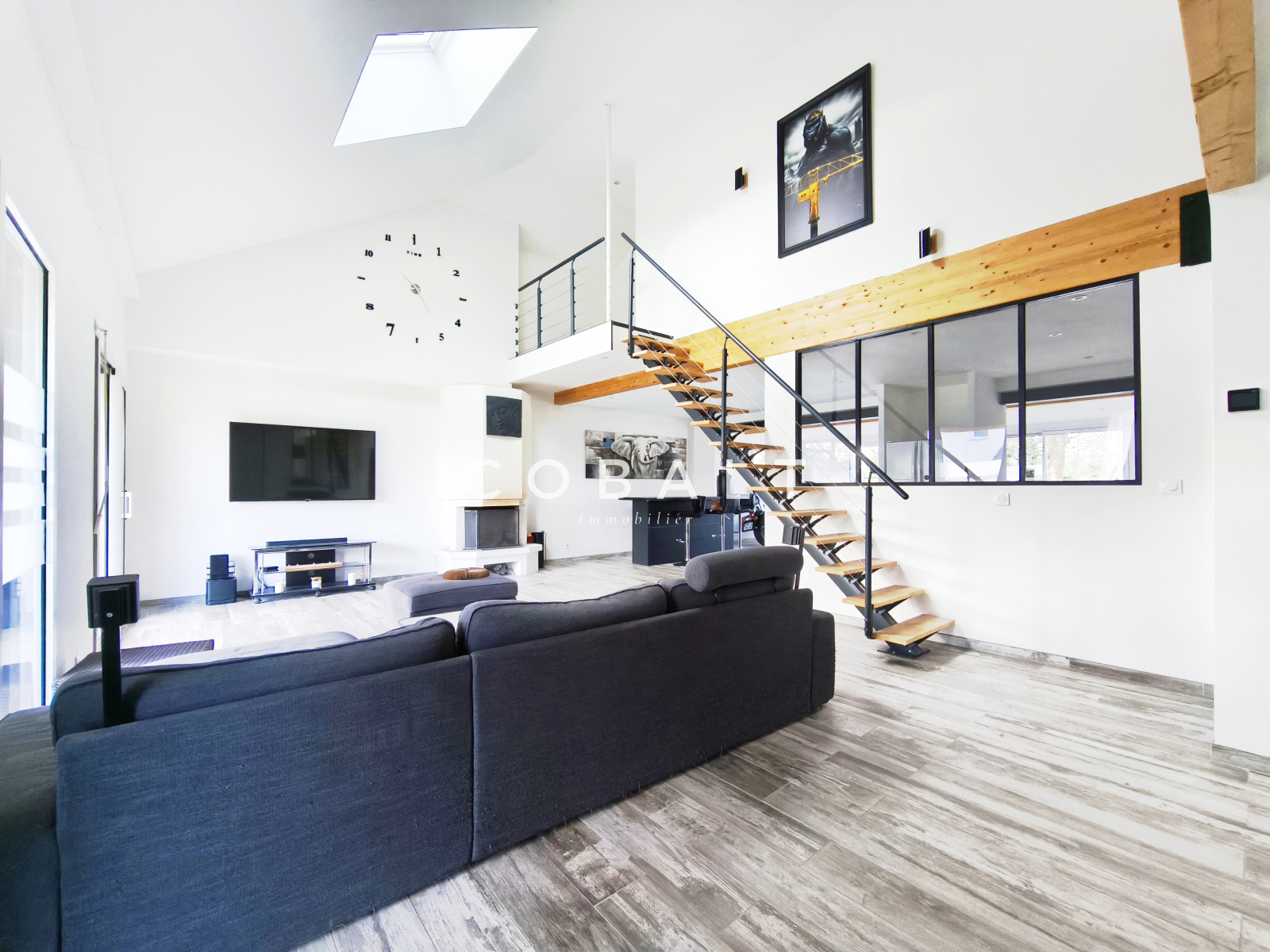 Dès l’entrée, le charme opère avec une vaste pièce de vie de 50 m², baignée de lumière, mise en valeur par une structure cathédrale et une cheminée, créant une atmosphère chaleureuse et conviviale. Cet espace se compose harmonieusement d’un salon, d’une salle à manger et d’une cuisine aménagée et équipée, idéal pour partager de beaux moments en famille ou entre amis.