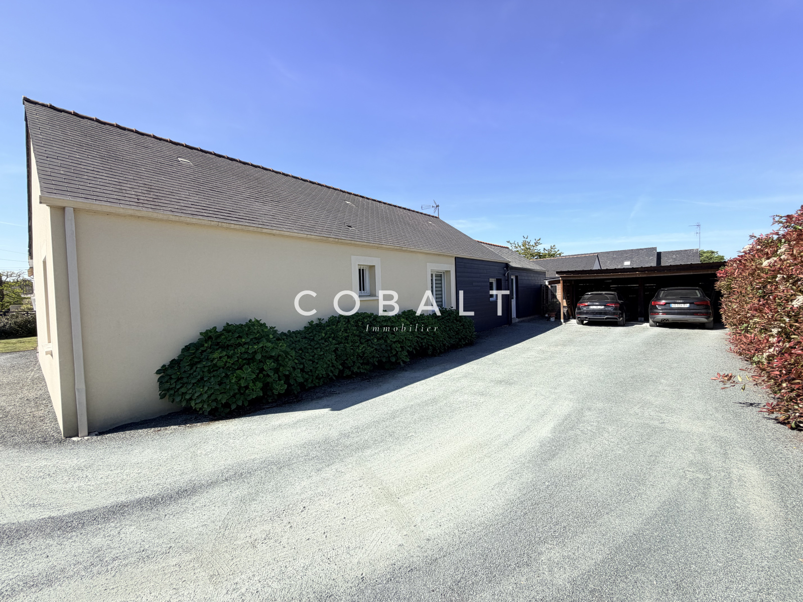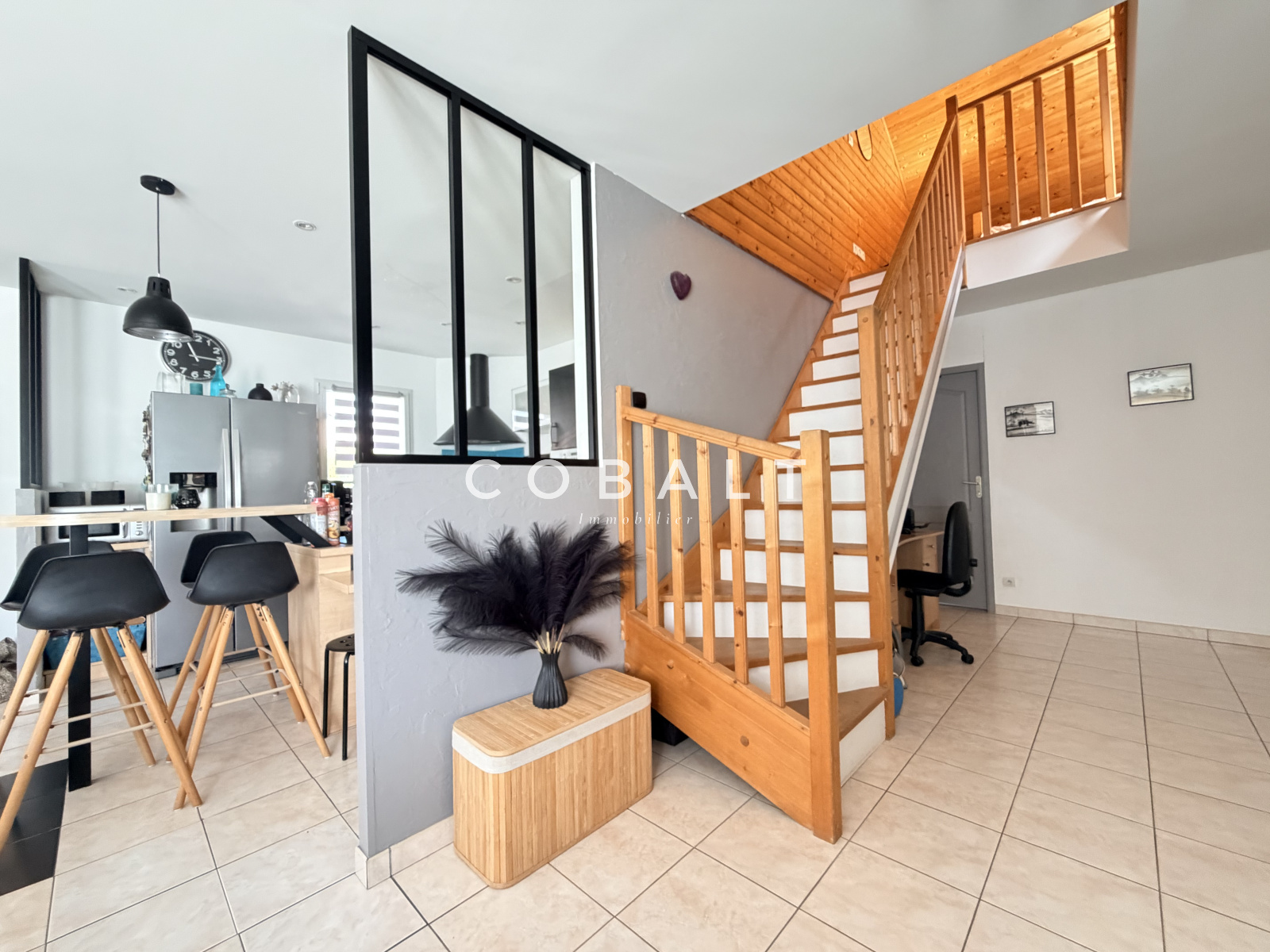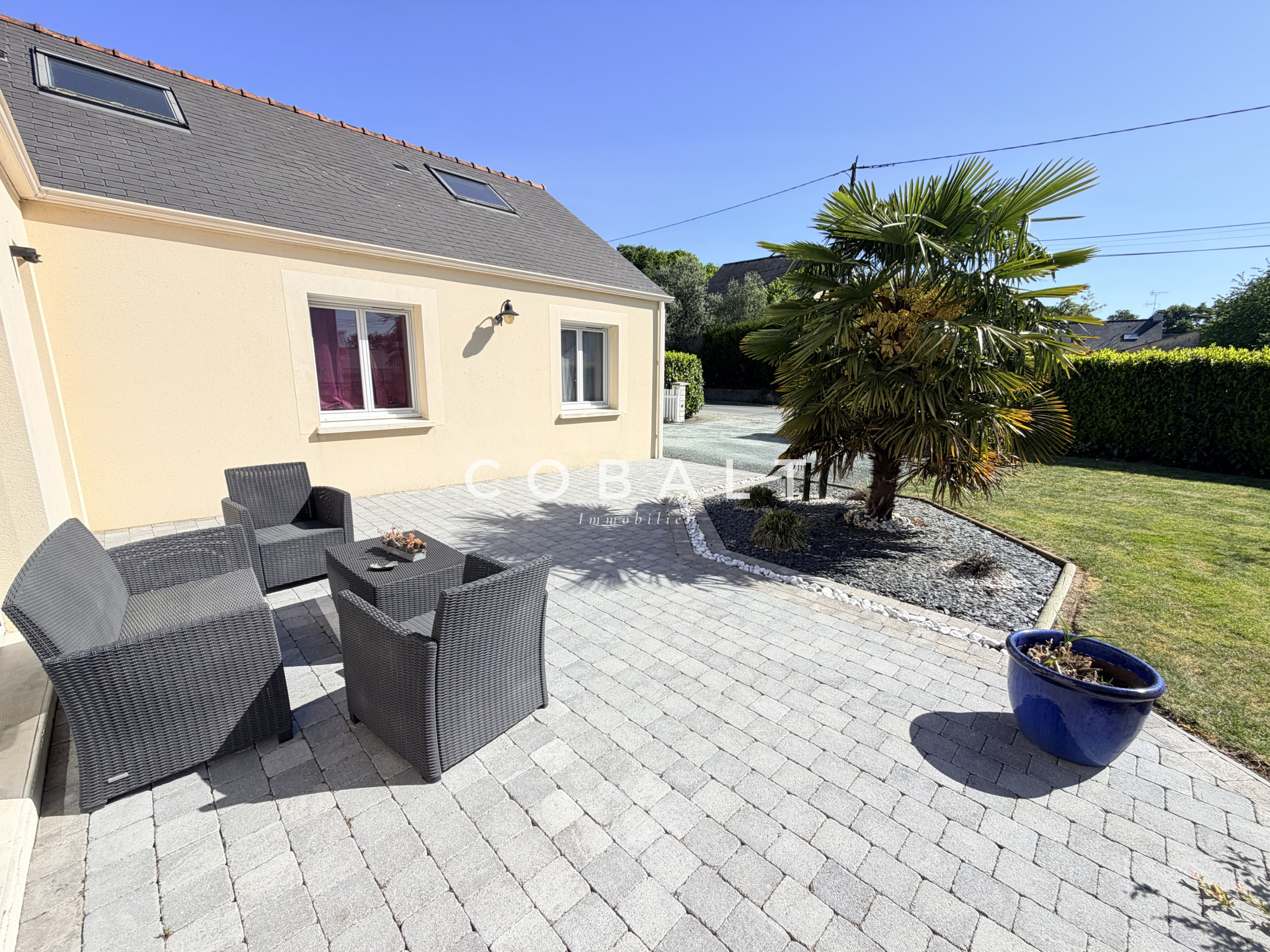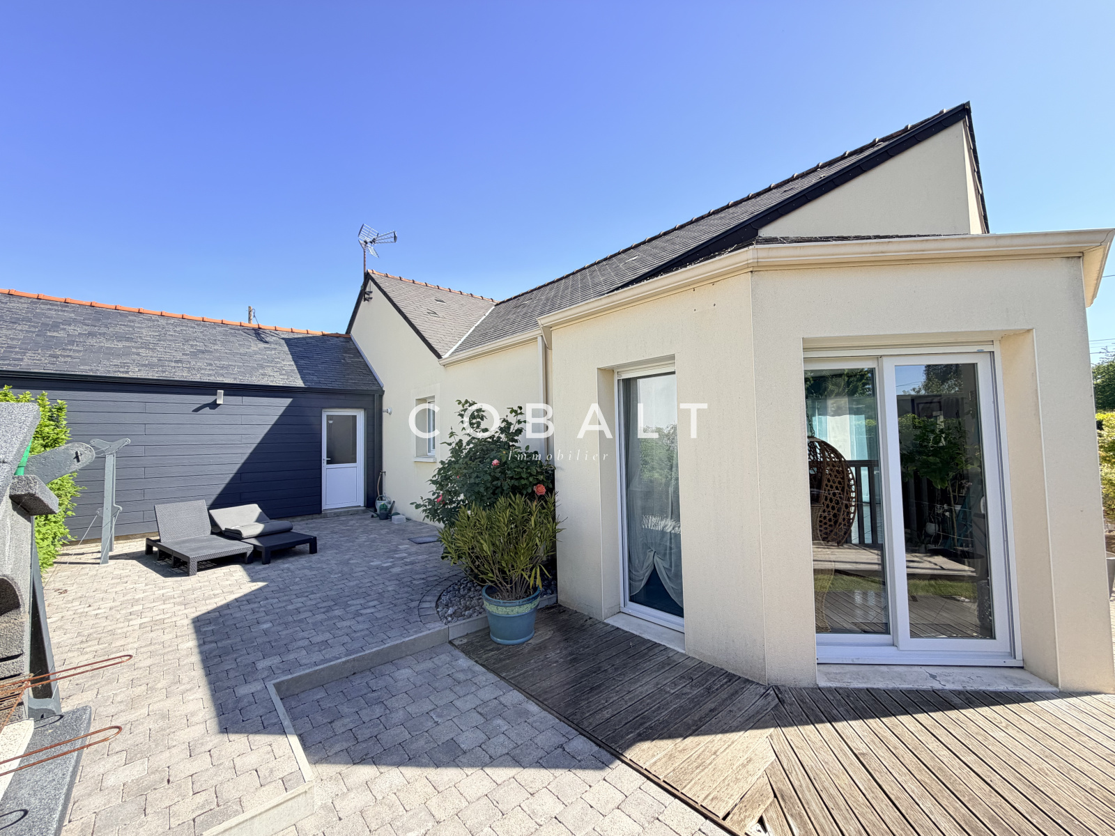 Cobalt immobilier Blain vous présente cette maison parfaitement entretenue, idéalement située à 3minutes du centre-ville de Blain. Découvrez au rez-de-chaussée une entrée avec rangements, un salon-séjour lumineux, une cuisine aménagée et équipée, une buanderie ainsi qu'un dégagement distribuant une suite parentale (avec dressing et salle d'eau), trois chambres dont deux avec placards, une salle de bains et un WC indépendant. À l'étage, une mezzanine esprit "chalet de montagne" offre un bel espace cosy pour un bureau, une salle de jeux ou une chambre d'amis. Une chambre ainsi qu'une salle de bains avec WC complètent ce niveau. A l'extérieur, vous profiterez de deux terrasses dont une avec pergola, d'un local à vélos, d'un double carport avec remise, le tout sur un agréable jardin.