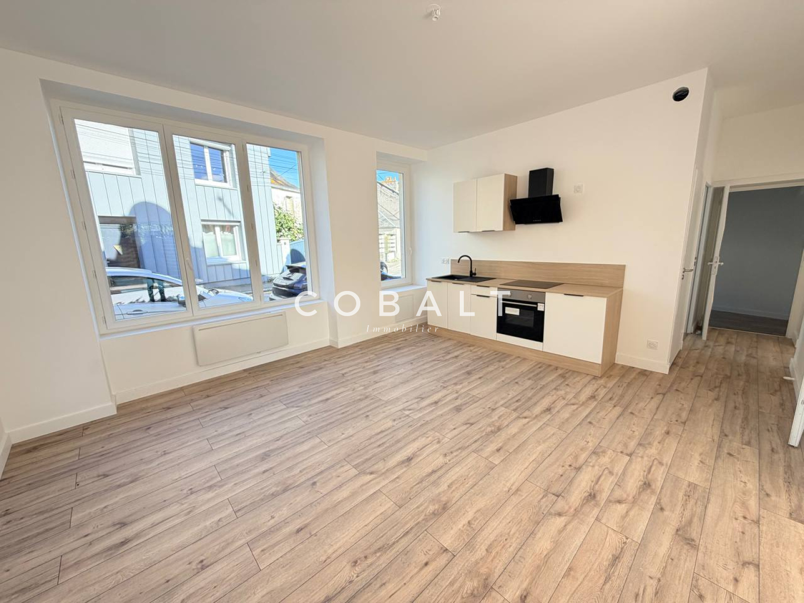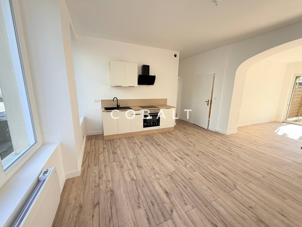 Le cabinet Cobalt Immobilier Blain vous présente ce bel appartement T3 fraichement rénové offrant une superficie habitable de 77 m², idéalement situé en plein cœur de la ville de Nozay, à proximité immédiate de toutes les commodités. Au rez-de-chaussée d'un immeuble composé de trois logements (copropriété en cours de constitution), découvrez une entrée ouvrant sur une cuisine aménagée et équipée (four, hotte aspirante et plaque à induction), un salon-séjour et un dégagement distribuant deux chambres, une salle d'eau moderne et des WC séparés. A l'extérieur, profitez d'une cour privative avec terrasse. Idéal pour un premier achat ou un investissement locatif.