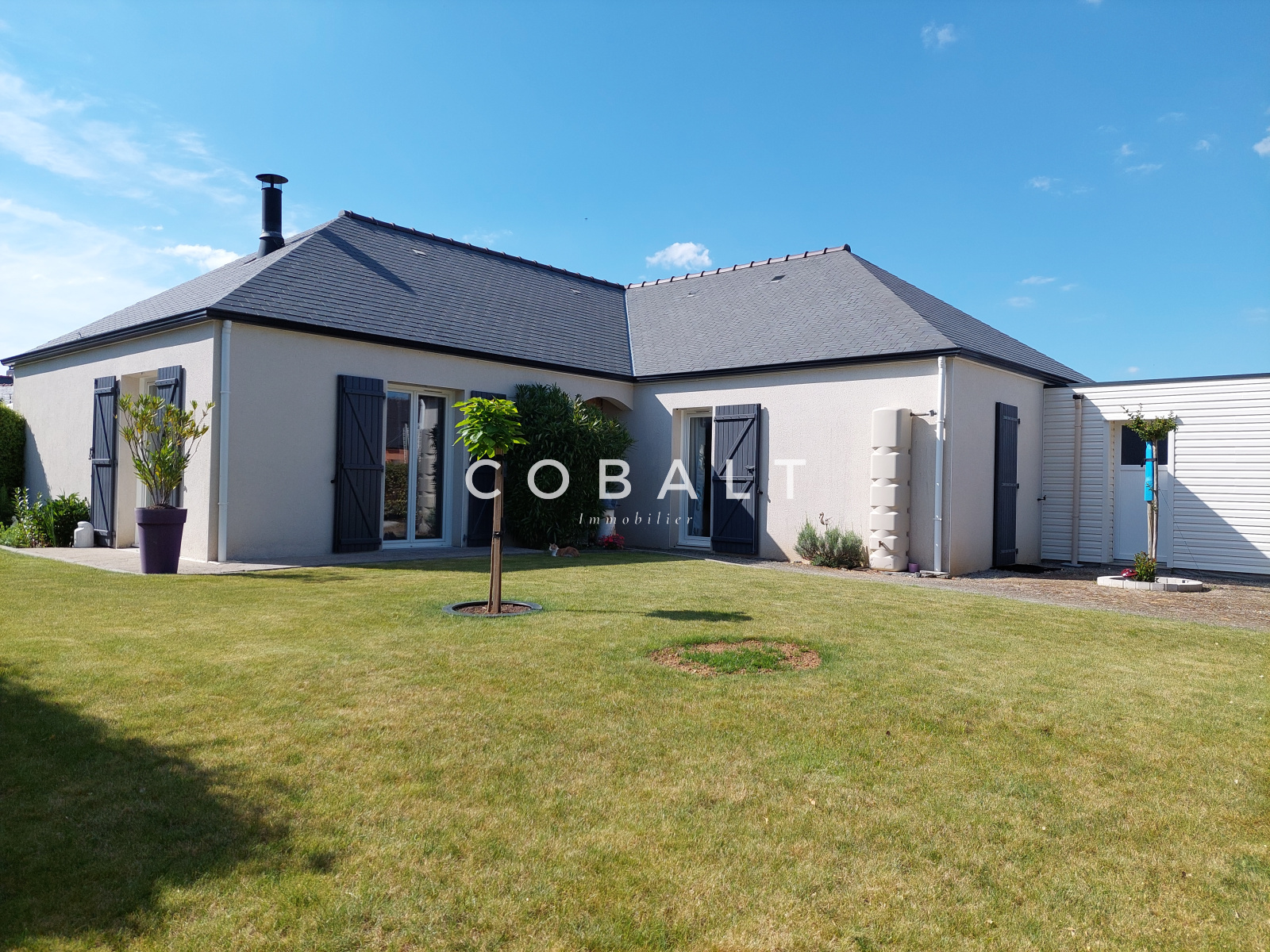 EXCLUSIVITÉ ! À Saint-Emilien-de-Blain (44130), le Cabinet Cobalt Immobilier vous propose cette belle maison de 2004 édifiée sur une parcelle de 890 m² comprenant : une entrée donnant sur un salon séjour très lumineux et agréable, une cuisine aménagée et équipée semi-ouverte, un couloir donnant sur une belle salle de bains, une chambre parentale avec dressing et trois autres chambres. Un garage double, un jardin et une très belle terrasse exposée Ouest. Ce bien dispose d'un plancher chauffant électrique et est raccordé au tout-à-l'égout. Prix: 335.000 € dont 4,7% de frais d'agence inclus à la charge de l'acquéreur, soit 320.000 € hors frais d'agence. Pour plus d'informations, veuillez contacter Mr Vincent ANASTACIO au 06 76 73 99 33 enregistré sous le numéro RSAC 2020AC000453 au greffe de NANTES.
