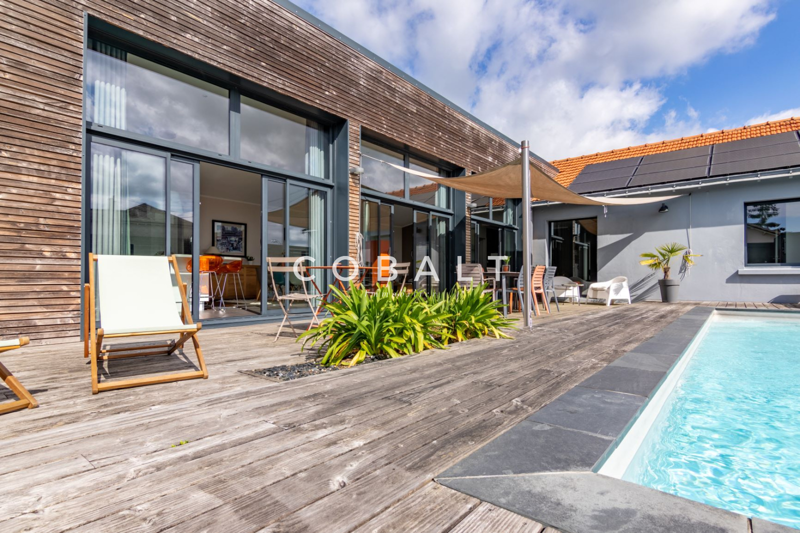 EXCLUSIVITÉ Cobalt Immobilier : Centre de Basse-Goulaine, maison de plain-pied, 4 chambres, SDE, SDB, piscine chauffée. Maison ancienne entièrement rénovée avec extension en 2013. 175 m² habitables comprenant un espace de vie de 68 m² avec poêle double face séparant le salon de la salle à manger avec cuisine intégrée et une arrière-cuisine donnant au garage. Cette maison comprend d'un côté la chambre des parents avec SDE et dressing, de l'autre, l'espace enfants composé de 3 belles chambres et d'une salle d'eau avec double-vasque. Panneaux photovoltaïques (sous garantie décennale). Chauffage par le sol sur toute la partie extension et chauffage gaz sur la partie nuit. Luminosité et confort au rendez-vous. En complément, nous retrouvons la piscine chauffée par pompe à chaleur. Le tout sur un terrain de 512 m² à l'abri des regards. Exposition Sud. Prix : 572.000 € dont 4% d'honoraires agence soit un prix hors honoraires de 550.000 €. Pour tout renseignements complémentaires, n'hésitez pas à contacter Hélène Blouin au 06 58 28 17 23 - Agent commercial enregistré sous le n° 2018AC00241 au greffe de Nantes. Réf : 0025