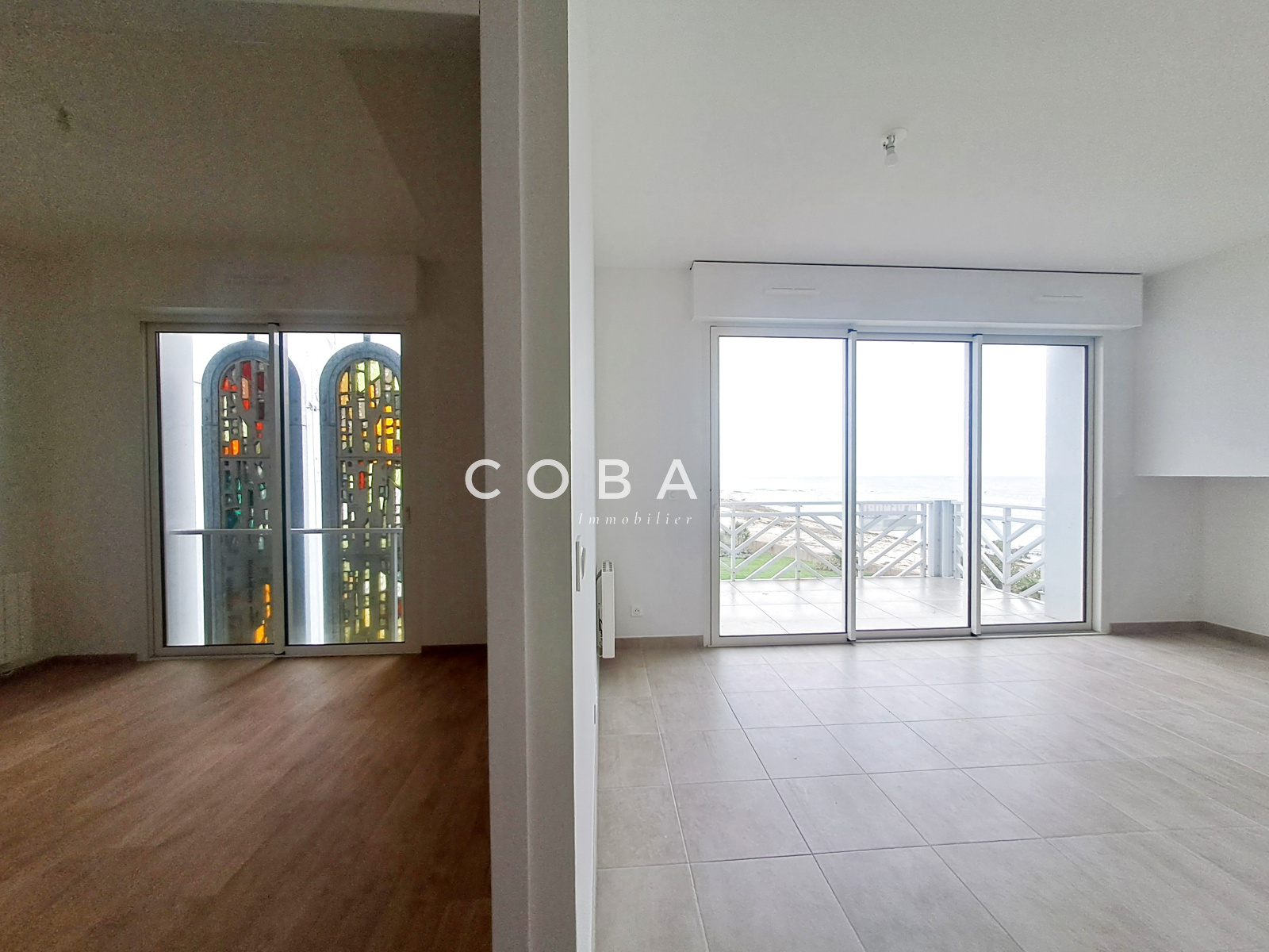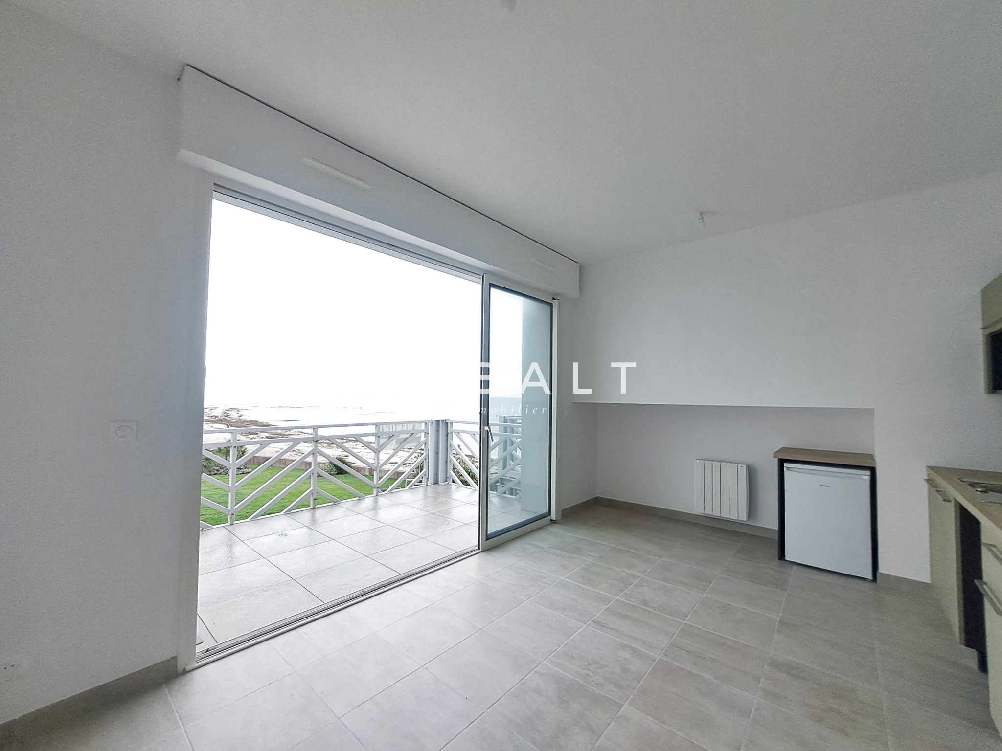 L'appartement se compose d'une entrée avec placards, d'une pièce de vie de plus de 25 m² avec sa cuisine aménagée et semi-équipée (plaques de cuisson, hotte, réfrigérateur-top) exposée ouest, le tout donnant sur le balcon, idéal pour profiter de cette vue imprenable sur l'océan tout en étant confortablement installé, d'une chambre avec placards retraçant une partie de vie de l'ancienne Chapelle grâce à ses vitraux d'origine ainsi que d'une salle d'eau (douche à l'italienne, douche parapluie) avec WC suspendu.