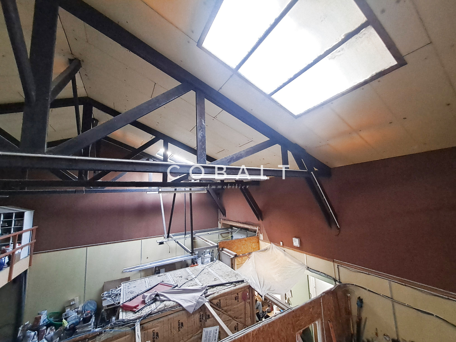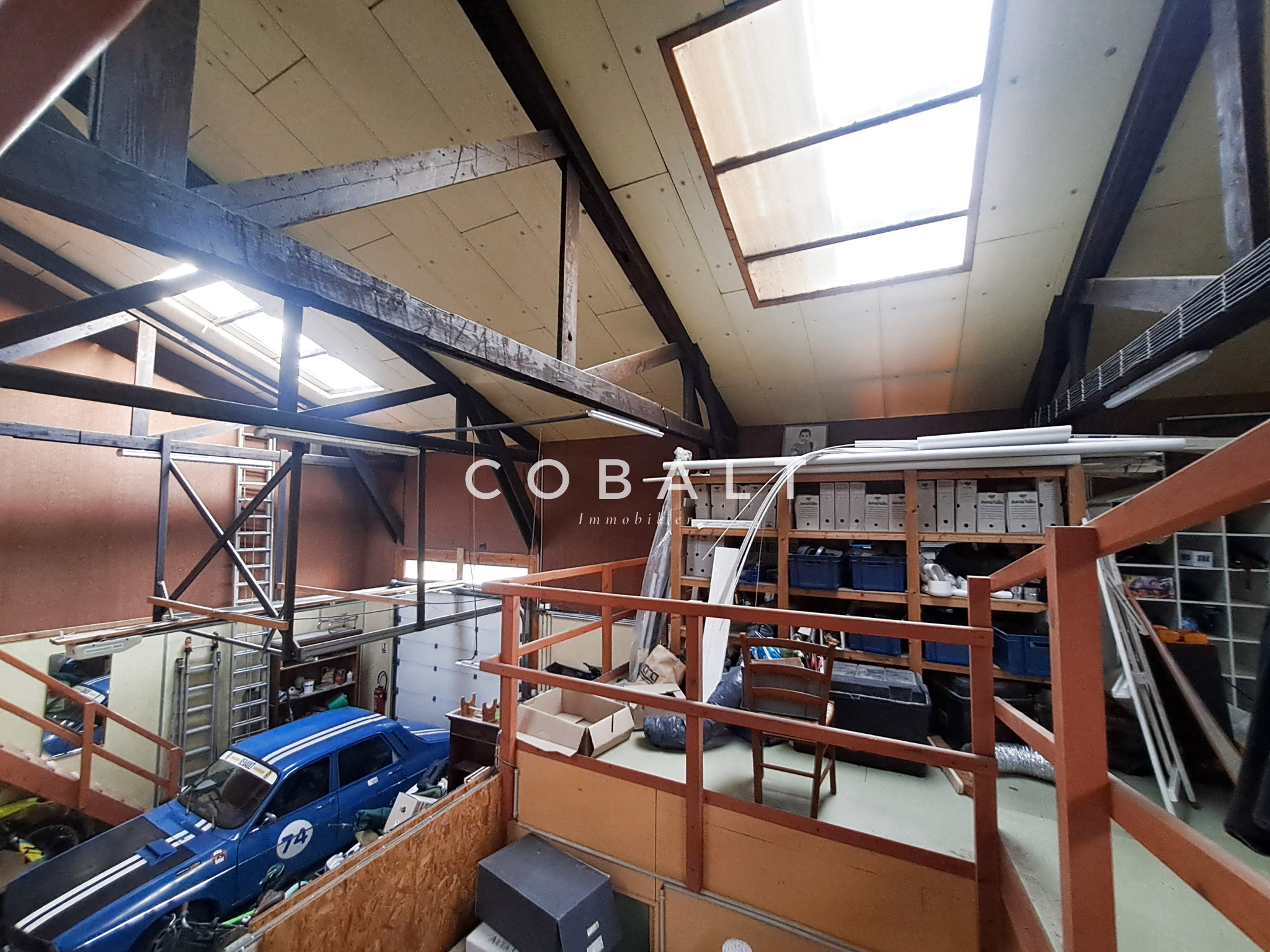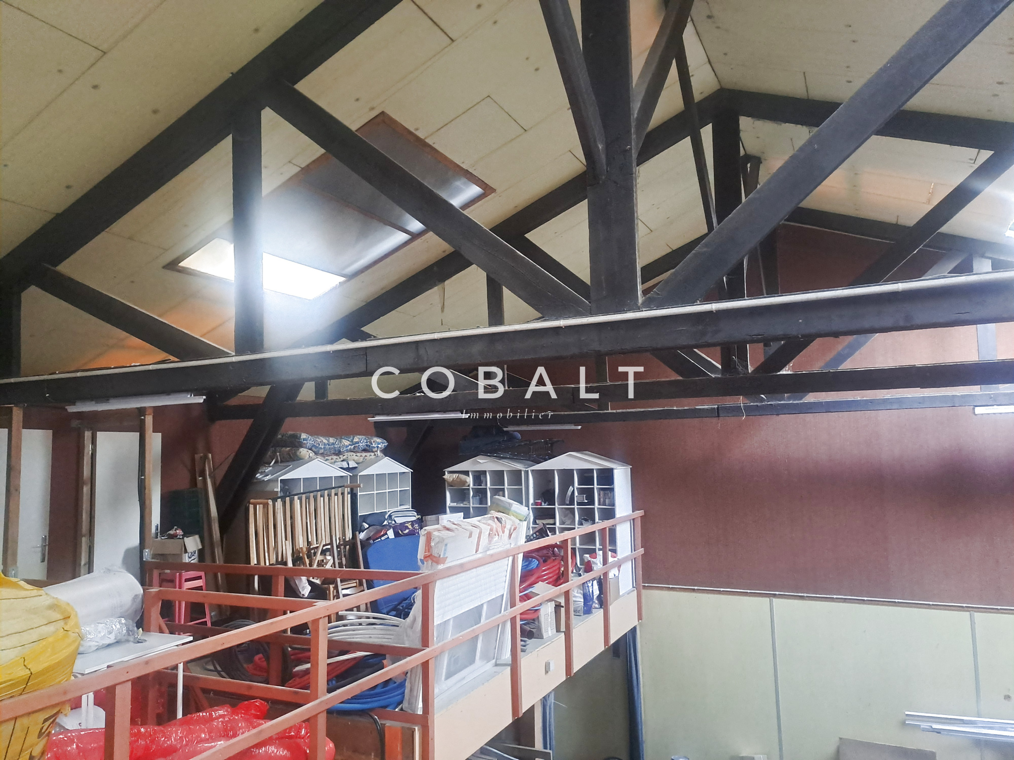 Il se compose d'un espace de stockage, de trois bureaux, d'une salle d'eau, d'un WC indépendant ainsi que d'une mezzanine.