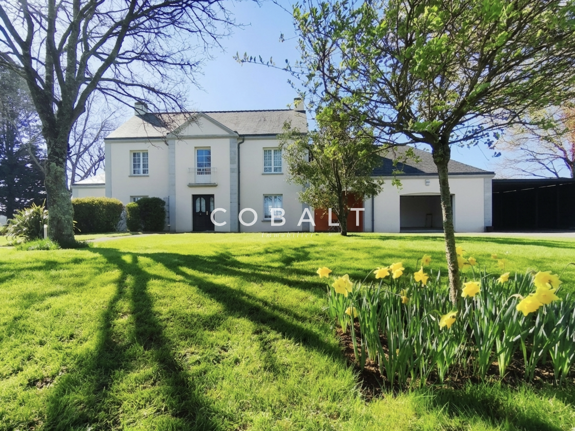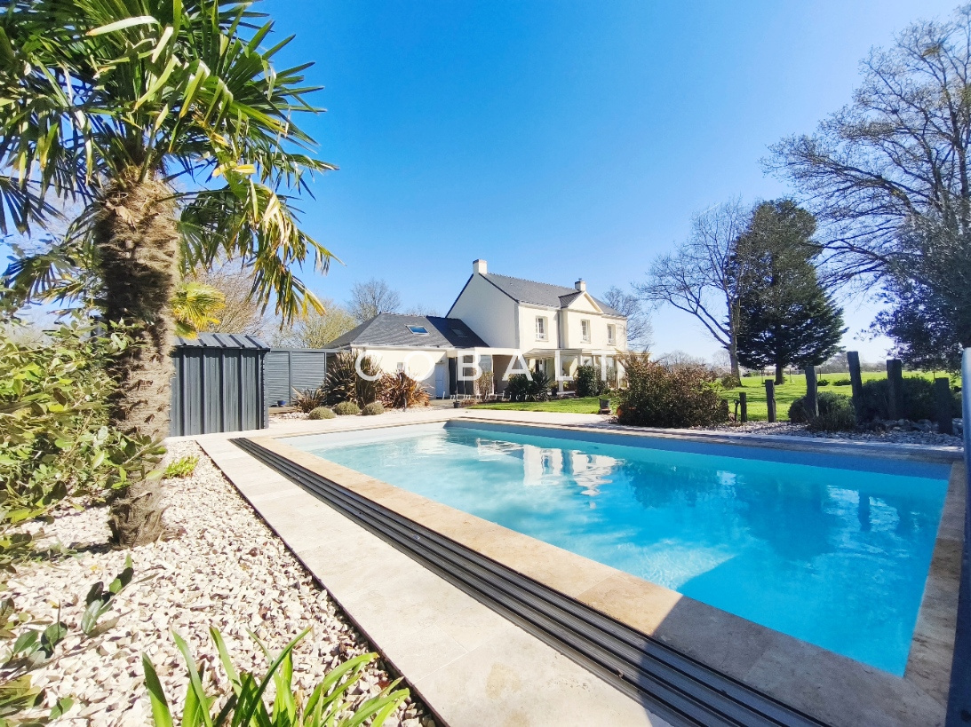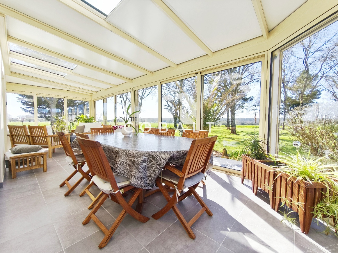Seulement chez Cobalt Immobilier Blain ! Je vous présente, à l'orée de la forêt et à 1.2 kms du bourg, cette maison d'architecte de 230 m² aux prestations soignées et matériaux de qualité qui offre un cadre de vie rare sur le secteur avec un jardin clos et paysagé de 5741 m² sans vis-à-vis.