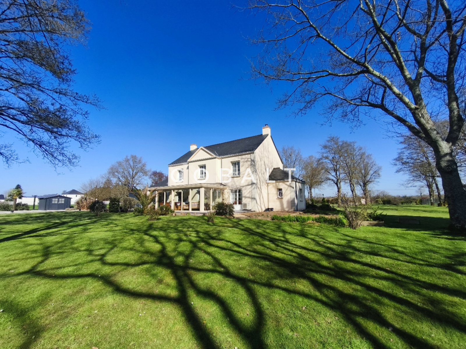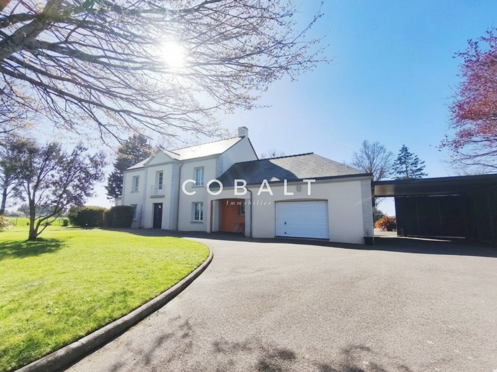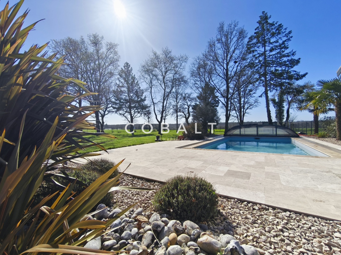 Seulement chez Cobalt Immobilier Blain ! Je vous présente, à l'orée de la forêt et à 1.2 kms du bourg, cette maison d'architecte de 230 m² aux prestations soignées et matériaux de qualité qui offre un cadre de vie rare sur le secteur avec un jardin clos et paysagé de 5741 m² sans vis-à-vis.