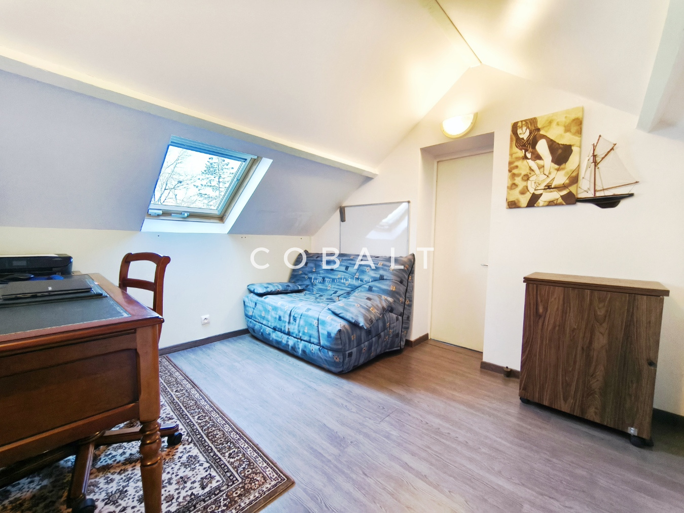 A l’étage : une grande mezzanine avec rangement dessert quatre chambres confortables dont trois avec placards, une salle de bains bien agencée, un WC séparé, bureau. Une petite pièce avec une entrée indépendante peut être idéal pour une activité professionnelle.