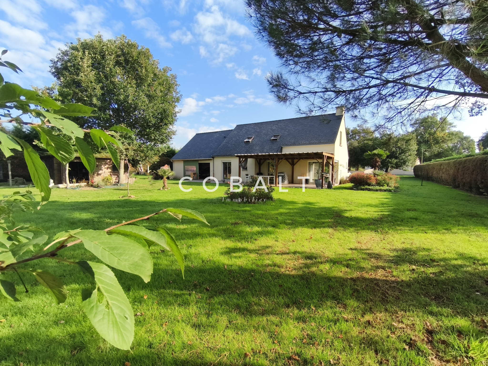 En exclusivité ! Cobalt Immobilier Blain vous présente à deux pas du bourg et de l'axe Nantes/Rennes, cette maison d'habitation de 120 m² avec une vie de plain-pied très agréable. Elle offre au rez-de-chaussée une entrée avec placard, une cuisine aménagée et équipée ouverte sur le salon-séjour avec terrasse en enfilade, une chambre, une salle de bains, un toilette. À l'étage un palier distribue deux chambres, un bureau ou petite chambre, une salle de bains, un petit grenier. En annexe une buanderie/arrière cuisine, un double garage. Côté extérieur, vous profiterez des beaux jours avec une belle terrasse carrelée et semi-couverte par une pergola, deux cabanons. Le jardin arboré de 3142 m² est clos en partie en zone constructible, puits privatif, assainissement collectif conforme. Une maison de bonne construction qui n'attend que ses nouveaux propriétaires ! Date de réalisation du DPE : 17/09/2025 - consommation énergétique : D (162 kWh/m²/an) - émissions de gaz à effet de serre : D (33 kgCO²/m²/an). Ce bien vous est proposé au prix de 252 000 € FAI, incluant 5% de frais d'agence à la charge de l'acquéreur, soit un prix hors honoraires de 240 000 €. Pour de plus amples renseignements, veuillez contacter Nolwen VIVANT au 06 83 11 86 08. Ref : NV/B-225