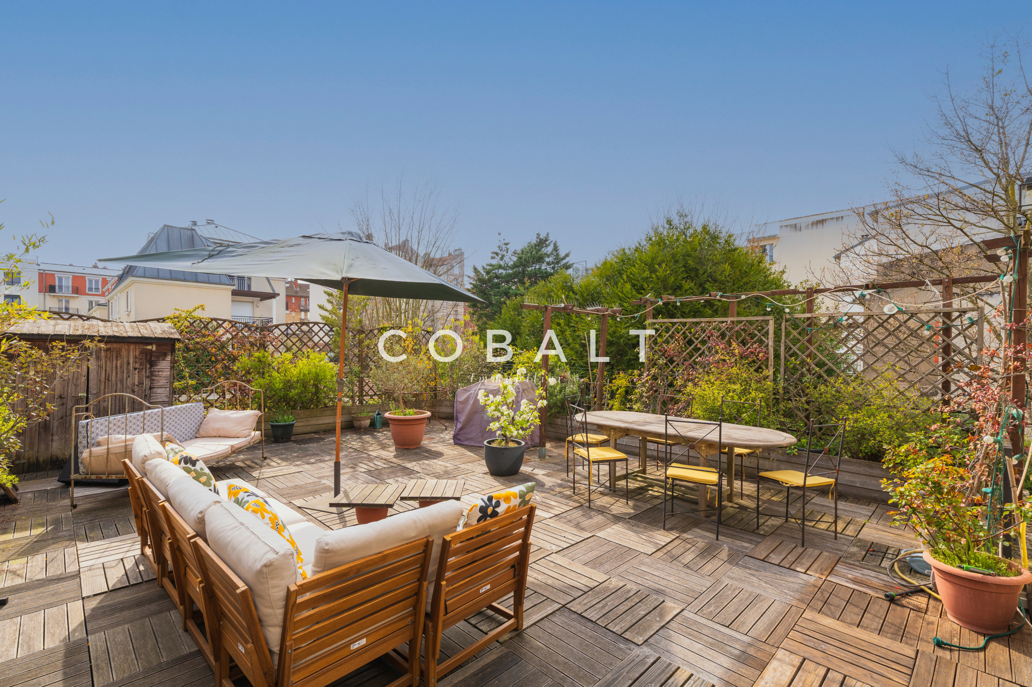 Ce bien, situé au premier étage d’un immeuble des années 1960, se distingue par une terrasse de 70 m² exposée plein sud et entièrement aménagée, offrant un véritable espace extérieur sans vis-à-vis, particulièrement rare sur le secteur.