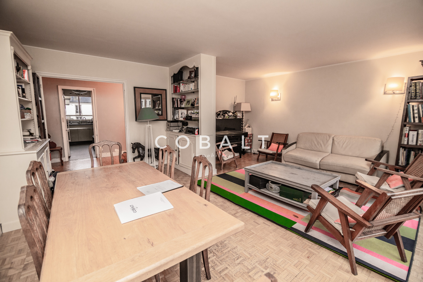 En plein coeur du quartier du Gros Caillou dans le VIIe arrondissement de Paris, à 2 pas de la rue Cler et des Invalides, venez découvrir cet appartement familial de 97,5 m² exposé plein sud et avec balcon donnant sur le dôme des Invalides. Situé au 5e étage d'un immeuble sur cour, l'appartement est composé d'un double séjour de 30 m² avec balcon, d'un couloir desservant 3 chambres (dont 1 avec lavabo), une salle de bains avec baignoire et WC, et des WC séparés. La cuisine est séparée. Une cave et une place de parking sous l'immeuble complètent ce bien. Travaux de rafraichissement à prévoir. Prix : 1.545.000 euros dont 3% d'honoraires agence à la charge de l'acquéreur ( soit 45.000 euros d'honoraires). Prix hors honoraires : 1.500.000 euros. Contactez le Cabinet Cobalt Immobilier au 06 50 17 40 16. Réf : DG-094